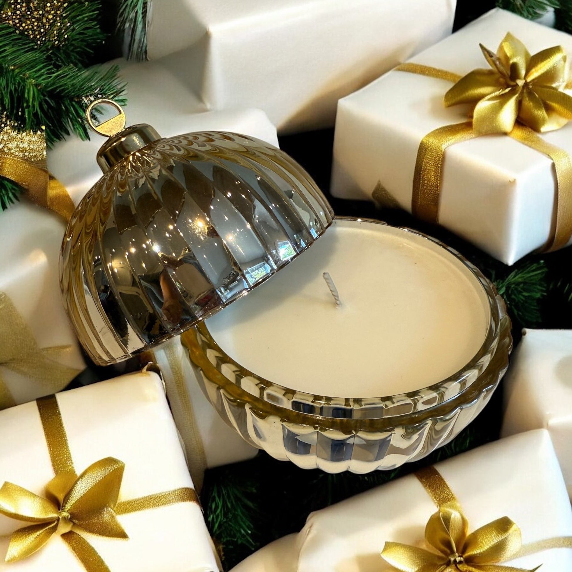 Bring festive sparkle to your home with our Christmas Bauble Candle Jar! This enchanting bauble opens to reveal a beautifully crafted candle, designed to fill your space with seasonal charm and holiday magic.